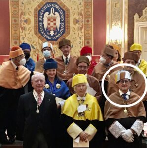 Con el traje académico ornado con la muceta de doctor ingeniero (expresión de su primer doctorado), el profesor Francisco González de Posada, miembro de la Sociedad Menéndez Pelayo, tomó posesión de la medalla número 38 de la Real Academia de Doctores de España en un acto que se celebró en el Paraninfo de la Universidad Complutense de Madrid.