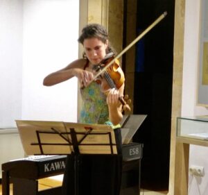 La violinista leonesa Lidia Sierra, componente del Trío Nocedo, fue la feliz protagonista del concierto que se celebró en la Casa Museo de Jesús de Monasterio, en Casar de Periedo (Cabezón de la Sal), como parte del reconocimiento del Premio ‘Jesús de Monasterio’ al mejor violinista del Concurso de Música de Cámara ‘Ecoparque Trasmiera’. El Premio ‘Jesús de Monasterio’ lo concede la Sociedad Menéndez Pelayo que organiza el concierto.
