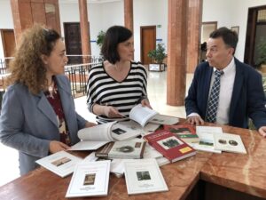 El presidente de la Real Sociedad Menéndez Pelayo (RSMP), Borja Rodríguez, acompañado de la vicepresidenta y directora de publicaciones, Raquel Gutiérrez Sebastián, mostró a la alcaldesa de Santander, Gema Igual, alguno de los 18 títulos que componen la remesa de 580 ejemplares donados al Ayuntamiento de Santander para entregar a los visitantes de la Feria del Libro. La RSMP ha hecho la misma donación a la Consejería de Educación, Cultura y Deporte, con lo que en total se han entregado más de un millar de publicaciones.